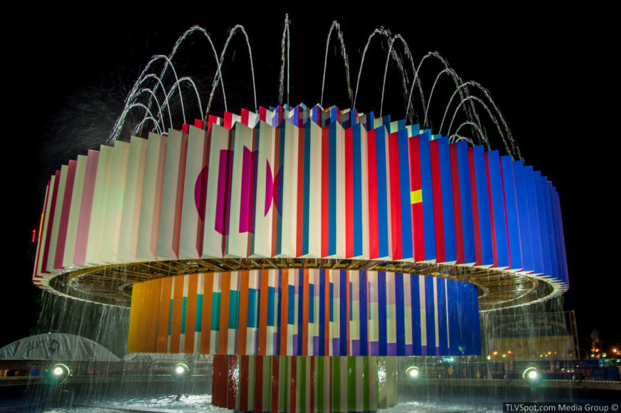 He continued to produce abstract, kinetic work that incorporated light, sound, and viewer participation. He also produced many public commissions, including a moving salon environment at the Elysée Palace in Paris in 1972. In the space, walls were covered with lenticular imagery; transparent doors were included; and a sculpture was placed on a kinetic carpet. In all, the environment shifted according to the viewer's position. In 1979, Agam was asked to make a work of art to commemorate the peacemaking efforts between Anwar el-Sādāt and Prime Minister Menachem Begin at Ben-Gurion University in Beersheba, Israel. He created the Star of Peace, a Kinetic sculpture that appeared from one direction to be the five-pointed star of Islam, from another, the six-pointed Star of David, and from a third, a new star formed from their fusion. Other public projects include a 1987 memorial at the Wailing Wall in Jerusalem for the victims of the Holocaust, and the world's largest menorah: a 32-foot, 4,000-pound structure at Fifth Avenue and 59th street in Manhattan, designed in 1977 and based on the original menorah in Jerusalem's Holy Temple.