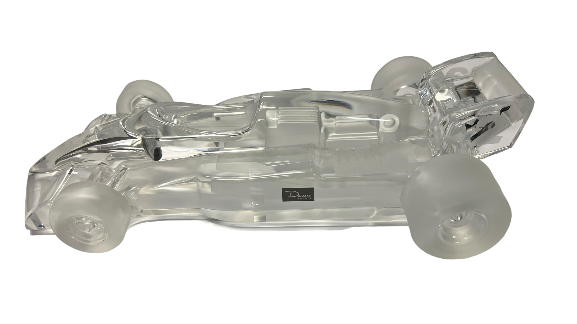 The racer is signed, "Daum France" and also retains its original box, and Daum paper label.