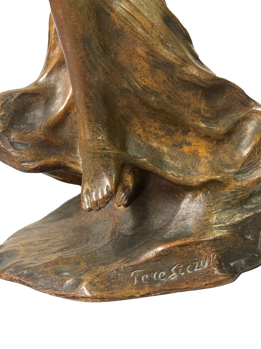 An Austrian-Ukrainian sculptor known for his bronze Art Nouveau figurines. His sculptures of boys and girls, often made to be paperweights, were finished with ivory-inset faces. Born in 1875 in Wybudow, Ukraine, he studied wood carving at the school of Arts and Crafts in Vienna under Hermann Klotz. The majority of his work was made between 1895 and 1925 in Vienna. Tereszczuk died in 1963 in Vienna, Austria.