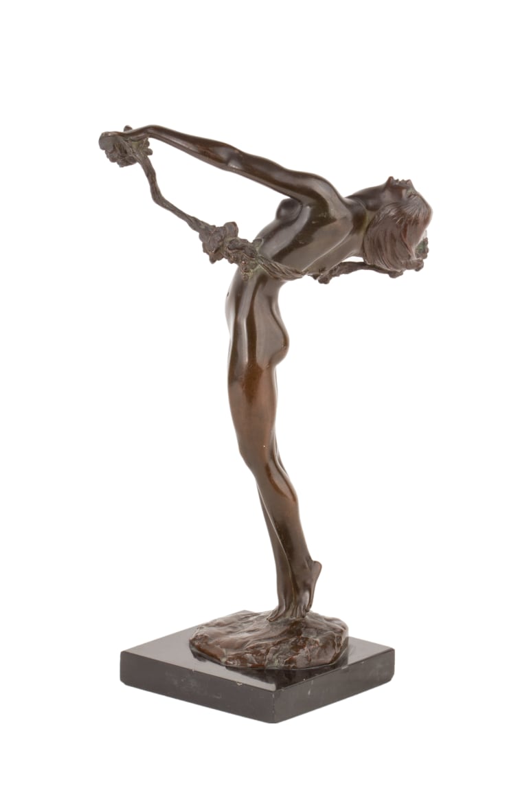The Vine was one of Harriet Whitney Frishmuth most prolific sculptures which was modeled after Desha a famous Chezcloslovakian balerina in 1921. The vine was cast between 1921 and 1966 according to The Frishmuth Catalogue of Works (see above) lists 317 casts bearing the Gorham QBWS marking out of a total edition of 396 castings. The difference were cast by, Roman Bronze Work.